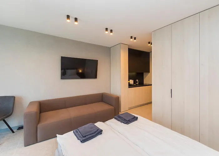 Pokoje w Eleve Residences - Obsidian Studios dodatkowo zawierają pełnowymiarową kuchnię z kuchenką mikrofalową i lodówką. W ciągu 13 min pieszo można dojść do restauracji Fish Pub Delfincheto i spróbować dań kuchni wschodnioeuropejskiej. Odległość do stacji kolejowej Sofia Central Bus wynosi około 10 min autem.